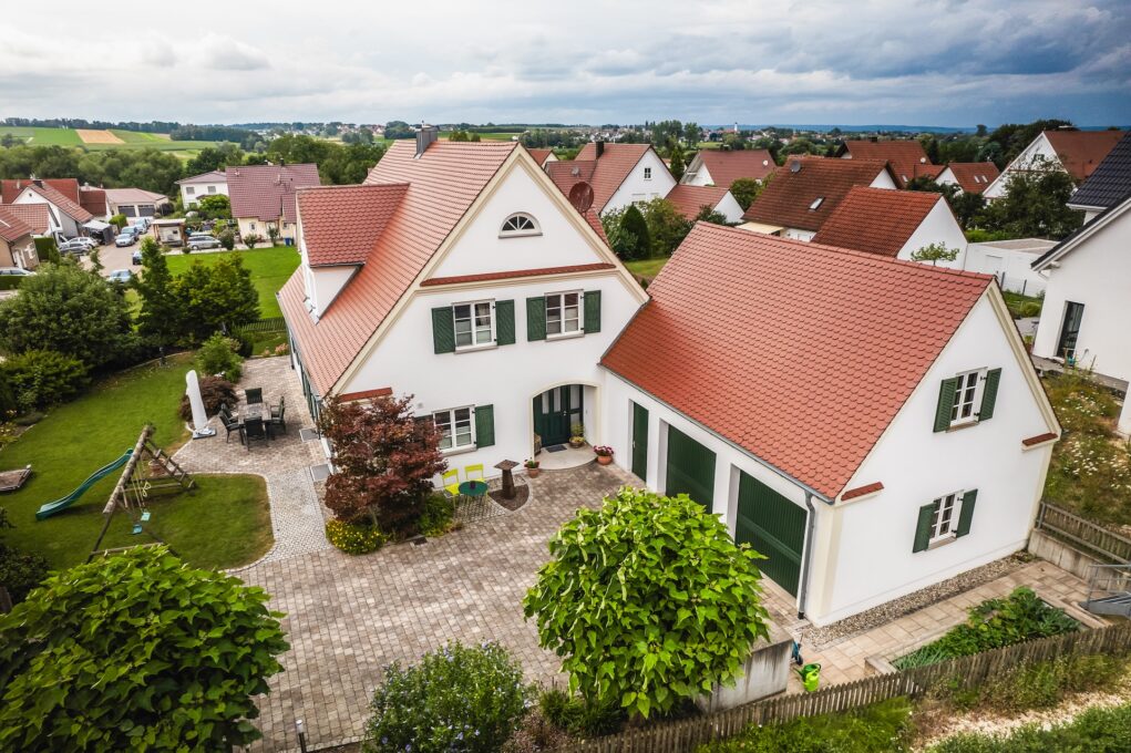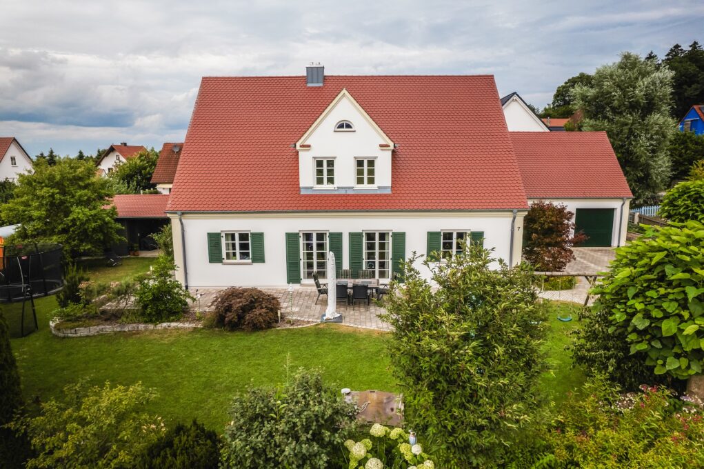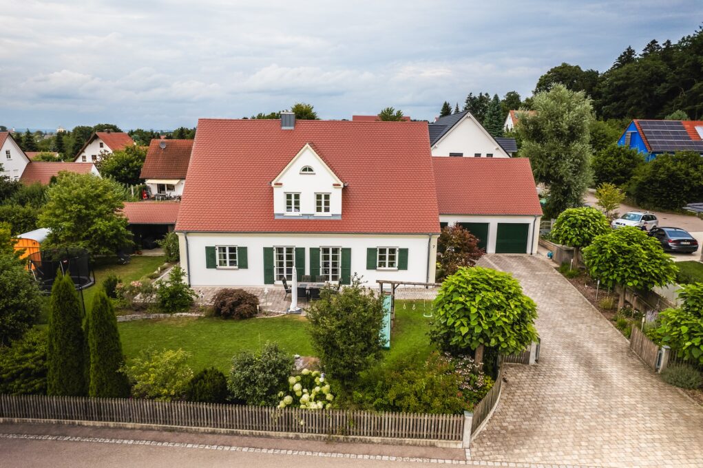 Die Doppelgarage fügt sich harmonisch ins Gesamtbild ein. Während des Bauprozesses arbeiteten wir eng mit den Architekten zusammen, um die Wünsche der Bauherren zu realisieren. Auch die Erdarbeiten und die Gestaltung der Außenanlagen lagen in unserer Verantwortung. So entstand ein Zuhause, das Tradition und moderne Ansprüche perfekt vereint.