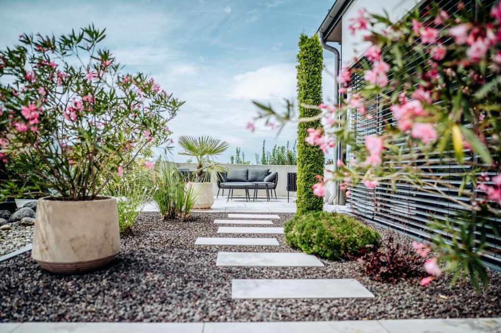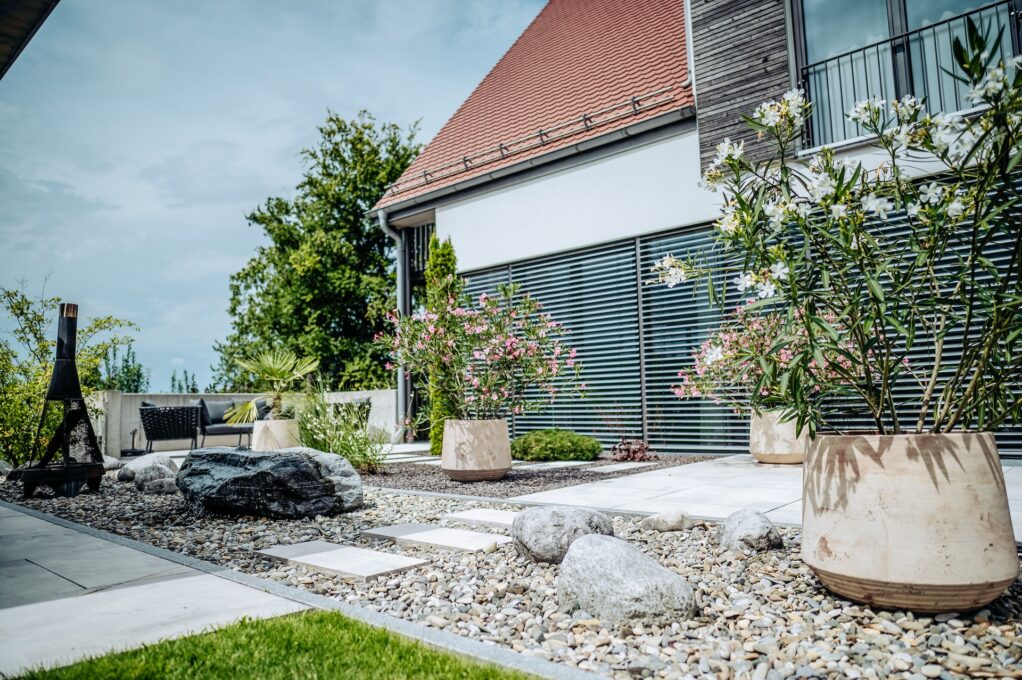 Für dieses Projekt haben wir umfassende Außenanlagen realisiert, die sowohl funktional als auch ästhetisch überzeugen. Unsere Pflasterarbeiten schaffen attraktive Wege, während präzise Betonbauarbeiten eine stabile Grundlage bieten. Durch das Setzen von Fertigteilen konnten wir die Strukturen effizient umsetzen. Zudem haben sorgfältige Natursteinarbeiten und eine durchdachte Wasserinstallation lebendige Akzente gesetzt, die die Außenanlage einladend gestalten.