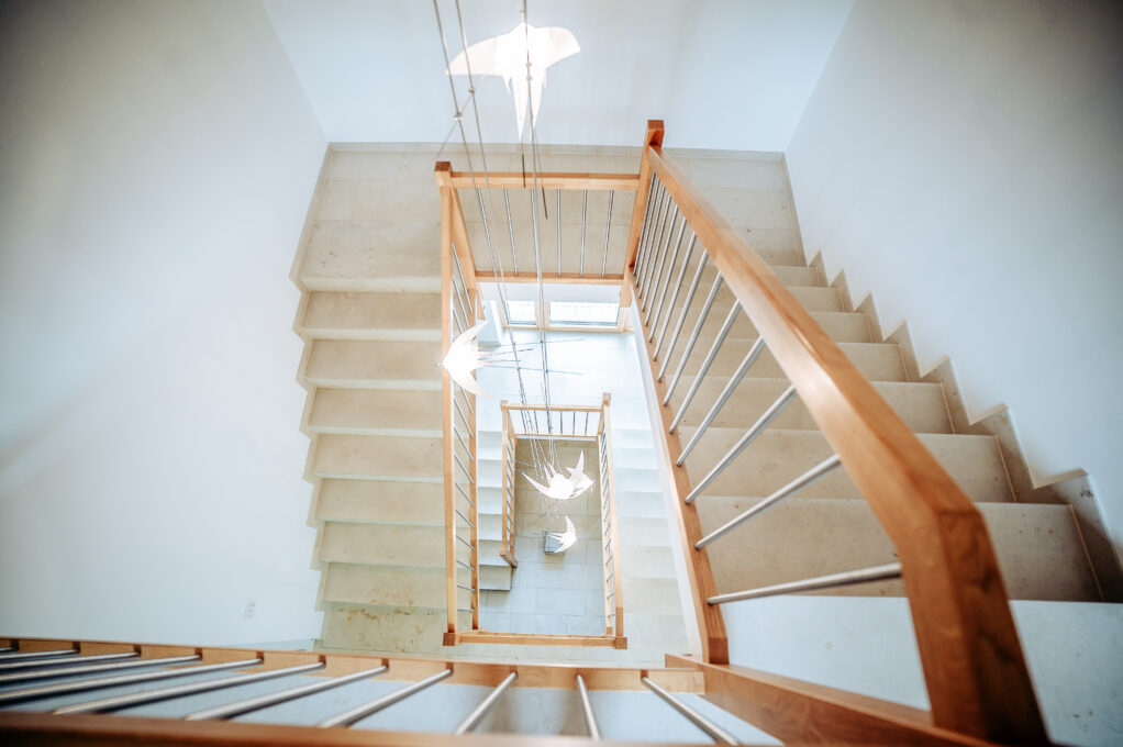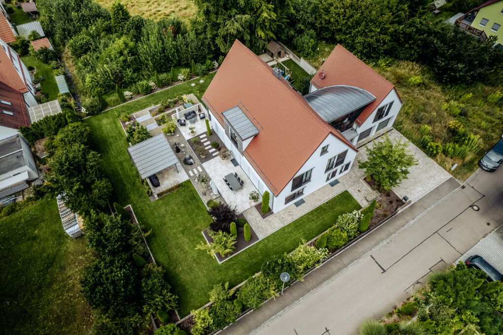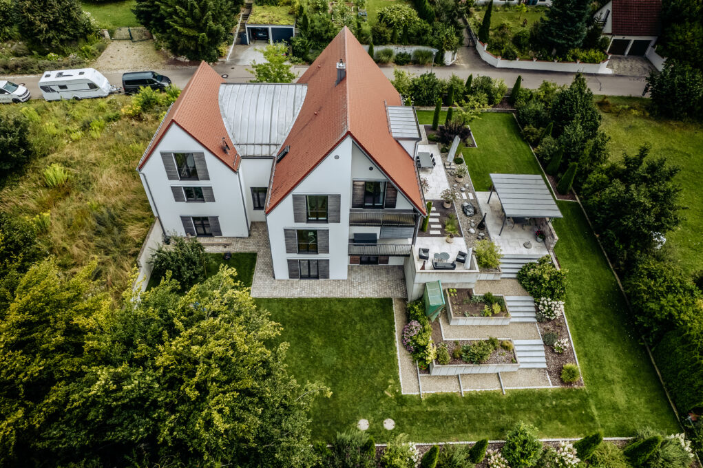 Traditionelle Architektur trifft Neuzeit. Das charmante Einfamilienhaus vereint modernes Wohnflair mit den Vorzügen eines klassischen Satteldaches. Der lichtdurchflutete Wohnraum bietet eine tolle Atmosphäre und das Treppenhaus mit Tonnengewölbe besticht durch eine gekonnte Lichtinstallation. So grenzen sich Wohnen und Büro perfekt voneinander ab. Während des Bauprozesses durften sich die künftigen Hausbewohner voll und ganz auf eine enge und routinierte Zusammenarbeit zwischen uns als Bauleiter und den planenden Architekten verlassen. Auch die Ausführung der Erdarbeiten und der Bau von Außenanlagen gehörten dabei zu unseren Aufgaben.